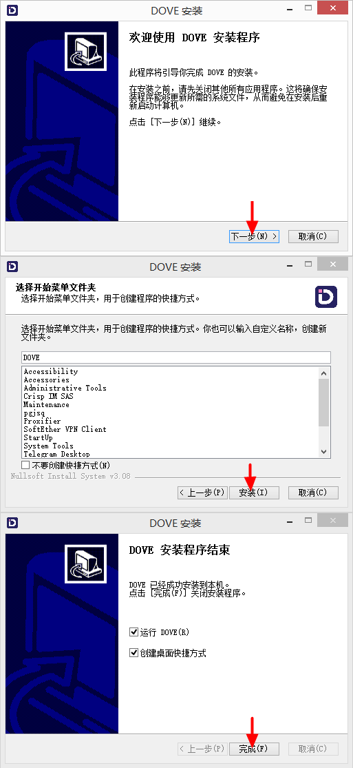第2步:双击运行 - DOVE_2程序,点击 - OK进行安装(如图)